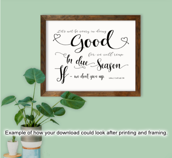 Galatians 6:9, In Due Season – Printable Wall Art – Digital Download – Two Sizes – Suitable for Framing