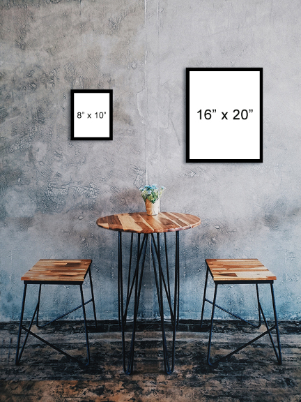 The 8×10 has cut lines for printing on your home or office printer – on 8.5″ x 11″ paper – then trimming to size for a standard frame.