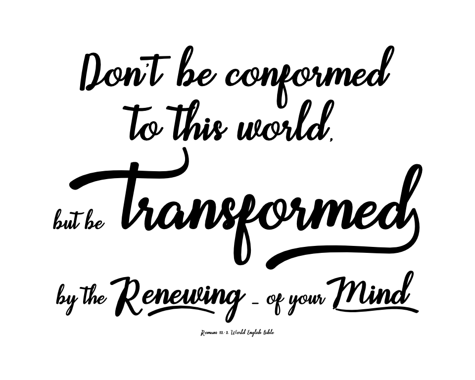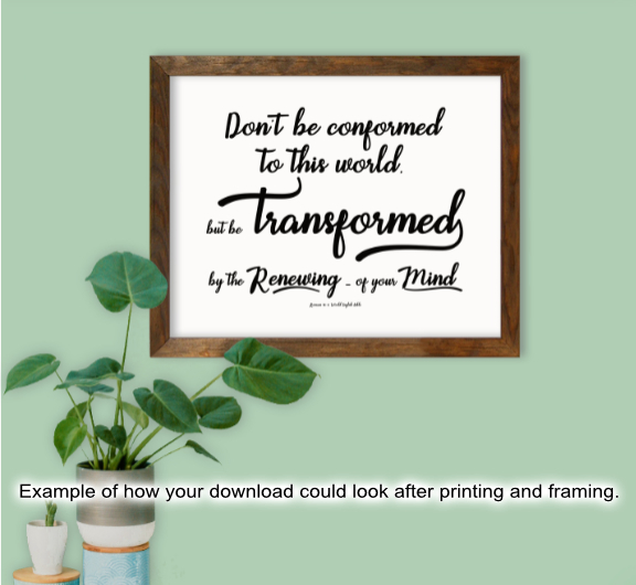 Romans 12:2, Be Transformed – Printable Wall Art – Digital Download – Two Sizes – Suitable for Framing